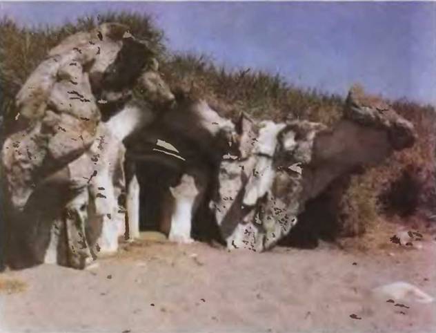 Это было в 1991 году на Чукотке, на берегу Берингова пролива. Морские волны размыли берег, и на наших глазах из земли появились два огромных, вертикально стоящих китовых черепа. Между ними проступили очертания челюстных костей и позвонков гренландского кита. Они располагались в порядке, исключавшем какие-либо сомнения: перед нами было жилище морских зверобоев древней Арктики[* М. Бронштейн. Многоликий Эквен. «Знание – сила». – 1989. – № 8. М. Бронштейн. Чукотские Микены. «Знание – сила». – 1999. – № 4.]. Кости выполняли роль несущих конструкций – стен и опор кровли. Узкое пространство между ними было коридором, ведшим в соседнее помещение. Мы стояли у входа в каменный век в самом прямом смысле слова…