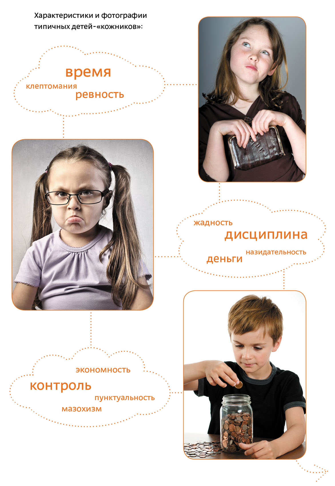Поверьте, мы не так далеко ушли от первобытной стаи, и семья — «ячейка общества» — и сегодня подобна ей по структуре. В семье «кожник» по-прежнему отвечает за материальную сторону жизни. У него все схвачено, посчитано и припрятано. Ребенок с «кожной» доминантой в характере ярко проявит свои черты уже в первые годы жизни.