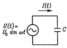 Из этого уравнения следует, что ток имеет амплитуду I и опережает входное напряжение по фазе на 90°. Если не принимать во внимание соотношение фаз, то