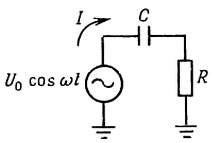 Упражнение 1.19. Докажите, что вся средняя мощность предыдущей схемы рассеивается на резисторе. Для того, чтобы решить эту задачу, нужно определить величину отношения UR2/R. Определите, чему будет равна эта мощность в ваттах, если цепь, состоящая из последовательно соединенных конденсатора емкостью 1 мкФ и резистора сопротивлением 1 кОм, подключена к силовой сети с эффективным напряжением 110 В (частота 60 Гц).