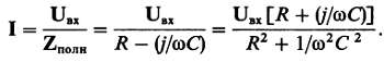 I = U/Z = U0/[R — j/ωC] = U0/[R + (j/ωC)]/[R2 + (1/ω2C2)],