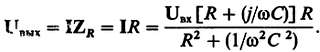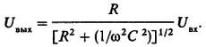 Uвых = (UвыхU*вых)1/2 = UвхR/[R2 + (1/ω2С2)]1/2