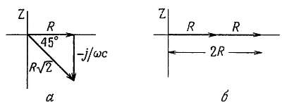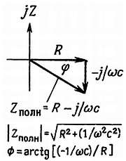 Векторное представление импеданса RС-цепи (рис. 1.53) показано на рис. 1.54.