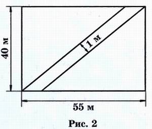 10(4). У одного человека был прямоугольный сад со сторонами 55 м и 40 м, и ему захотелось проложить в нем дорожку шириной 1 м, как показано на рисунке 2.