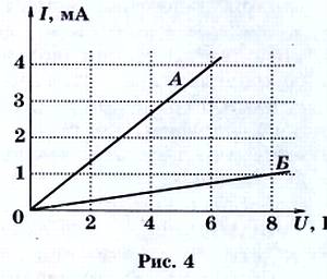 10. Используя два резистора с сопротивлениями R1 и R2 собирают две схемы: в одной их соединяют последовательно, а в другой — параллельно. На рисунке 4 изображены графики зависимости силы тока в цепи от приложенного напряжения. Определите, какой из графиков соответствует каждой из схем. Найдите также значения сопротивлений R1 и R2 резисторов.