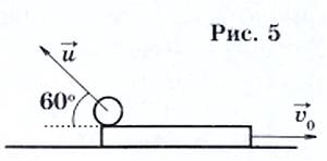 12. Массивная платформа движется с постоянной скоростью v->0 по горизонтальному полу. С заднего края платформы производится удар по мячу. Модуль начальной скорости мяча относительно платформы равен u = 2v0, причем вектор u-> составляет угол ? = 60° с горизонтом (рис. 5).