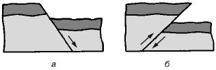 В зависимости от того, как перемещались разорванные блоки в вертикальном направлении, выделяют сбросы и надвиги (рис. 7.6).