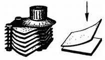 Л. — Да. Обычно конденсатор переменной емкости состоит из набора неподвижно закрепленных обкладок, расположенных параллельно друг другу и соединенных между собой, и набора подвижных обкладок, расположенных между неподвижными и, само собой разумеется, тоже соединенных между собой. В широко распространенной конструкции конденсатора переменной емкости форма обкладок приближается к полукругу.