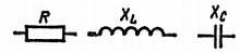 Рис. 30. Три тела препятствий для прохождения электрического тока: активное R, индуктивное XL и емкостное XC сопротивления.