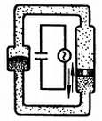 Рис. 27. При слишком высоком напряжении или близком расположении обкладок конденсатора между последними могут проскакивать искры.