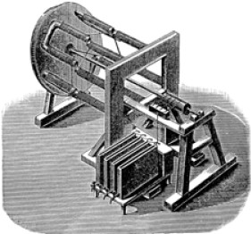Исследователи обычно разбивают весь путь технической эволюции электродвигателя на несколько этапов. Самый первый – от опыта Фарадея в 1822 году и до практического образца «магнитной машины» Якоби, так описанного изобретателем в «Известиях Парижской академии наук»: «В мае 1834 года я построил свой первый магнитный аппарат, дающий постоянное круговое движение…» Первый электродвигатель состоял из двух наборов стержневых электромагнитов. Один из них неподвижно закреплялся на доске двигателя, другой – на противоположной раме, которая могла вращаться. Для питания электромагнитов использовалась батарея гальванических элементов. А для изменения полярности подвижных электромагнитов был предложен коммутатор. Казалось бы, коммутатор – небольшая и не главная деталь двигателя. Между тем он представлял собой глубоко продуманную конструкцию из четырех разрезанных металлических колец, изолированных от машины и установленных на валу ротора. По кольцам скользил рычажок, к которому подводился ток от батареи. За один оборот вала направление тока в катушках электромагнитов восемь раз менялось, соответственно менялась и полярность электромагнитов. И они поочередно то притягивались, то отталкивались от неподвижных магнитов статора, установленных на деревянной раме.
