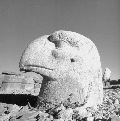 Восхождение на Нимруд-даг долгое и утомительное... Камни с узкой тропинки обрываются вниз, стоит неимоверная жара... Но вот за одним из поворотов взору человеческому открывается святилище, величавое и доныне – через 2000 лет. Под белым конусом пирамиды сидят на верхней террасе пять величественных статуй. Только у одной из них сохранилась голова: это – Фортуна.