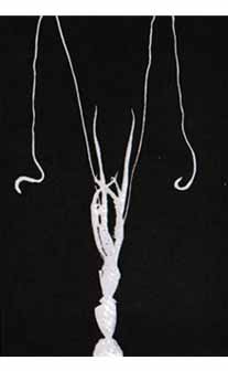 Что касается кальмаров,[58] то некоторые их глубоководные виды, помимо обычных глаз, наделены еще так называемыми термоскопическими глазами, то есть органами, способными улавливать инфракрасные лучи. Эти глаза рассеяны у них по всей нижней поверхности хвоста. Каждый имеет вид небольшой темной точки. Под микроскопом видно, что устроен он, как обычный глаз, но снабжен светофильтром, задерживающим все лучи, кроме инфракрасных. Светофильтр расположен перед преломляющей линзой – хрусталиком. Линза отбрасывает сконцентрированный пучок тепловых лучей на чувствительный к ним воспринимающий орган.