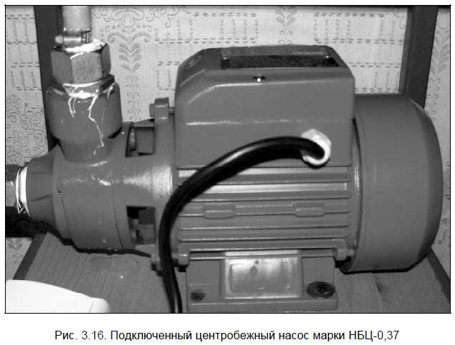 Однако русских трудно напугать этой проблемой, и народные умельцы придумали простой способ — подключить в разрыв заливного шланга стиральной машины водонагнетающий насос. Причем для этой цели можно применить практически любой тип насоса, будь то погружной нагнетательный, центробежный бытовой либо вибрационный. Все они создадут минимально необходимое для стиральной машины водяное давление во входном контуре. Здесь предпочтения могут расходиться в том, какой насос выбрать: погружной или вибрационный придется опускать в бочку, центробежный засасывает воду из шланга и отдает ее также через шланг. Цены на насосы также разнятся: от 1100 до 4200 руб. Но это — дело вкуса. На мой взгляд, удобнее всего взять центробежный бытовой насос (рис. 3.16) и подключить его в разрыв штатного заливного шланга от стиральной машины. Стоимость такого насоса весьма демократична.