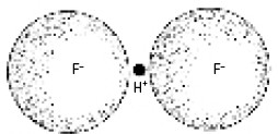 Рис. 1. Пример водородной связи между ионами фтора в HF2- Показан предельный случай, когда связь осуществляется с помощью протона