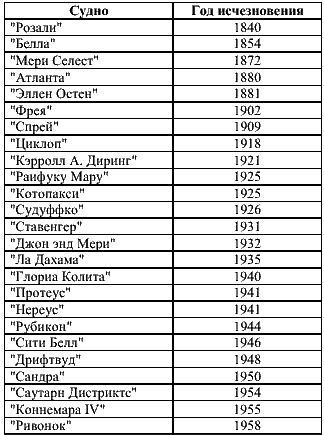 Таб. 1. Список судов, ставших жертвами Бермудского треугольника