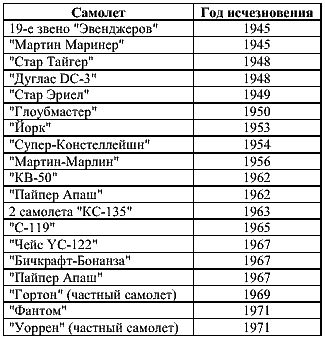 Подробный список самолетов, ставших жертвами Бермудов, приведен в нижеследующей таблице.