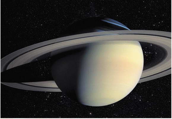 Кольца Сатурна состоят из множества частичек льда, обломков камней, покрытых ледяной коркой, и пылинок, которые обращаются вокруг планеты. Кольца располагаются в экваториальной плоскости планеты, которая не совпадает с плоскостью земной орбиты, поэтому их вид меняется от широкой полосы до еле различимой черты. Размер частиц колец меняется от микрометров до сантиметров, лишь некоторые из них достигают в поперечнике десятков метров. Расстояние между обломочками колеблется от сантиметра до нескольких метров, а скорость их движения в разных частях системы колец различна: с увеличением расстояния от планеты она уменьшается.