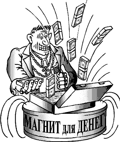 Ну а перед “магнитом для денег”, с завидной регулярностью рекламируемым газетой “АиФ”, никто не устоит, даже очень богатые люди. Оказывается, деньги обладают… догадались? Правильно, информационной составляющей. Умные люди ее выделили, многократно усилили, записали на кристаллический носитель и вмонтировали в медальон. Все. Носите его и ни о чем не думайте. Информация с него перетечет на ваше тело, и вы, как магнит, начнете притягивать к себе деньги, богатство и удачу. Не напоминает ли это поле чудес в стране…, ну да вы сами знаете, в какой именно.