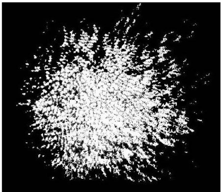 Рис. 3.35. Мгновенное изображение яркой звезды, Веги, полученное французским астрономом А. Лабейри на 5-метровом Паломарском телескопе при атмосферном качестве изображений 1,5?. Именно такой угловой диаметр имеет вся эта «клякса» на фото, но состоит она из множества мелких частей – спеклов, каждый размером около 0,02?. Спеклы – это результат интерференции света, прошедшего через объектив телескопа и получившего случайные фазовые задержки при прохождении через атмосферу.