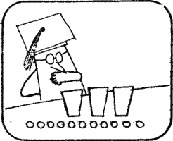 Проф. Квиббл. Задачка не из трудных, не так ли? И решений она допускает много. Например, в один стакан можно положить 3 монеты, в другой — 7 монет, а в третий — 1 монету.