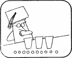 Проф. Квиббл. Надеюсь, вы не отступили перед трудностями? Вам нужно было лишь догадаться вставить один стакан в другой. После этого уже совсем нетрудно разложить монеты так, чтобы в каждом стакане оказалось нечетное число монет.