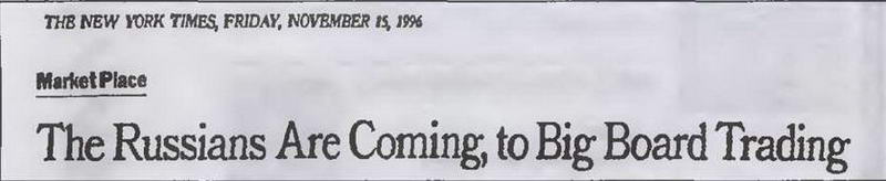 Русские идут. На Большую Биржу. Заголовок из New York Times, Ноябрь, 1996 год