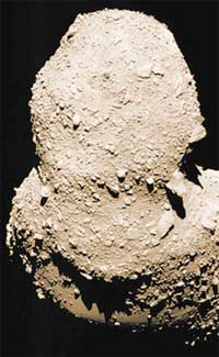 Астероид Итокава. Осенью 2005 года его исследовал японский аппарат «Хаябуса». Размеры астероида всего 300 метров.