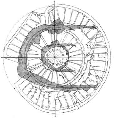 Сейчас будет представлена очень важная позиция в композиции Аркаима. Систематическое изложение ее будет долгим и сложным, но без этого невозможно завершить сложное описание особенностей системы координат Аркаима и основы замысла конструкции.