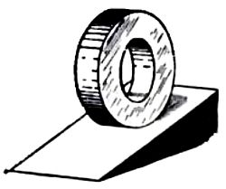 Обыкновенное колесо скатывается с наклонной плоскости равномерно ускоренно. Колесо же, которое вы видите на рисунке, на первый взгляд нарушает закон физики и скатывается без ускорения.