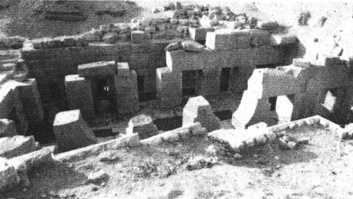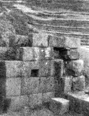 Общий вид Осириона, гигантского подземного сооружения, отрытого из ила и песка за храмом Сети I в Абилосе и относящегося, по мнению египтологов, к эпохе Сети I (начало XIII века до н. э.). Геологи не согласны: уровень пола Осириона на 15 метров глубже, чем Храма. Это позволяет предполагать, что он построен тысяч на десять раньше, чем Храм, и затем был занесен отложениями.