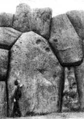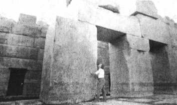 Автор кажется карликом рядом с гигантскими блоками Саксайхуамана, некоторые из которых весят как полтысячи легковых автомобилей. Это свидетельствует, что мощные фортификационные сооружения типа Мачу-Пикчу были построены не инками, а неизвестными руками, за тысячи лет до них.
