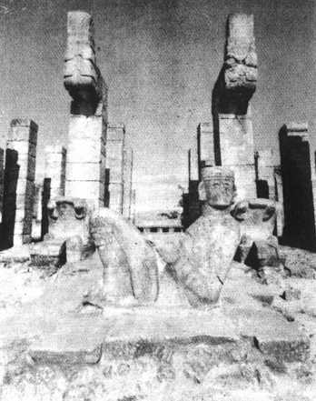 Группа идолов на платформе пирамиды в Туле (Мексика).