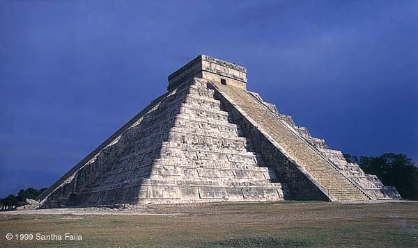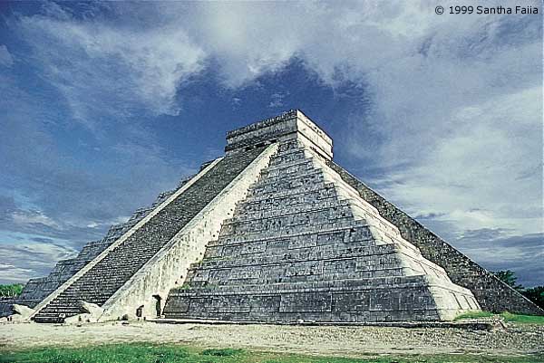 Храм Кукулкан Кецалькоатля в Чичен-Ице. Развитая геодезическая наука помогла так ориентировать этот удивительный зиккурат (ступенчатую пирамиду), чтобы специфическое сочетание света и тени с точностью часов сигнализировало о наступлениии весеннего и осеннего равноденствия.