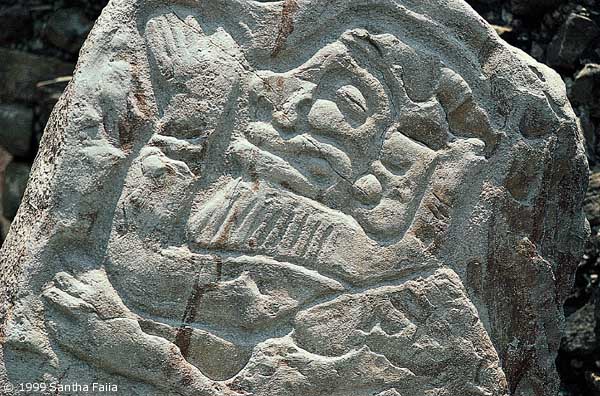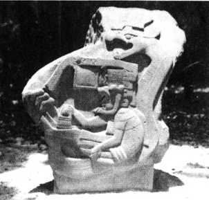Скульптура «Человек в змее» из ольмекских раскопок в Ла-Венте. Обратите внимание на Х-образные кресты на головном уборе.