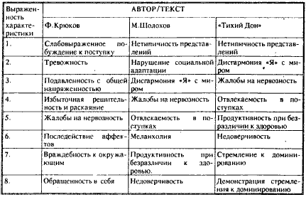 Разумеется, вопрос о соответствии психологического описания личности автора описанию его обыденного поведения нуждается в дополнительном специальном рассмотрении. В данном случае мы апеллируем к способности читателя интуитивно соотнести эти описания.
