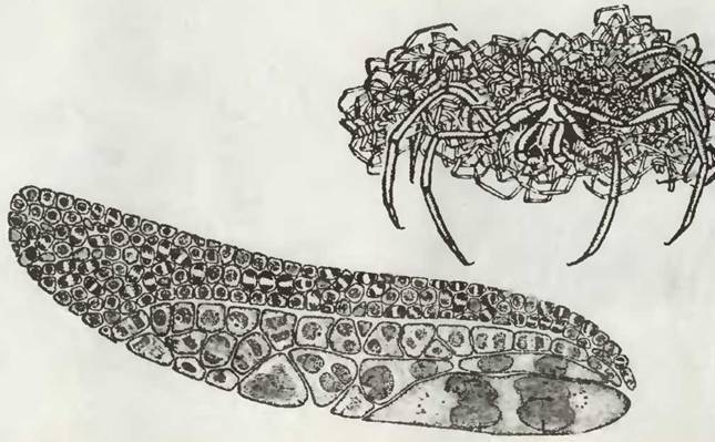 Колонии, порой фантастического вида, образуют и далекие родичи позвоночных – оболочники. Представьте себе мерцающее фосфорическим светом змеевидное тело длиною в несколько метров, движимое неведомой силой сквозь морские пучины… Члены подобных колоний связаны настолько тесно, что еще в 1866 году выдающийся биолог Эрнст Геккель предложил называть их не особями, а зооидами, подразумевая, что их обособленность выделяется нами интуитивно, на обыденном уровне.