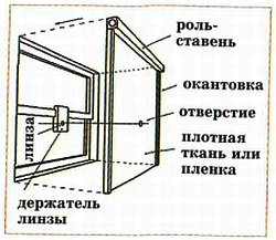 Получив первый опыт, вы можете приступить к сооружению камеры-обскуры больших размеров. За ее основу можно взять, например, обувную коробку.