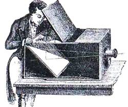 В энциклопедии сказано, что камера-обскура (от латинского camera obscura — «темная комната») — простейший вид устройства, позволяющего получать оптические изображения объектов. Чаще всего аппарат представляет собой светонепроницаемый ящик с отверстием в одной из стенок и экраном (матовым стеклом или тонкой белой бумагой) на противоположной стенке.