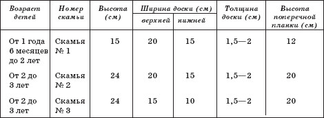 Доска: длина 2–2,5 м, ширина 25, 30, 15 см (для разных возрастных групп), толщина 5 см.