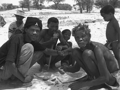 Европейские ученые, которые время от времени оказываются в Калахари, обычно пытаются начать знакомство с бушменами с попыток найти вождя, чтобы вручить ему подарки и заручиться на будущее его поддержкой. Однако у бушменов в отличие от многих других африканских племен вождей нет. Есть просто самые уважаемые люди – обычно это старый опытный охотник или же колдун, к которому обращаются за советом и для решения споров. Но никаких привилегий он при этом не имеет.