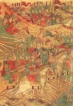 ПЕРЕПРАВА ВОЙСКА МОСКОВСКОГО ВЕЛИКОГО КНЯЗЯ ДМИТРИЯ ИВАНОВИЧА ЧЕРЕЗ ДОН. ЛИЦЕВОЙ СВОД XVI ВЕКА. ДРЕВНИЙ ЛЕТОПИСЕЦ