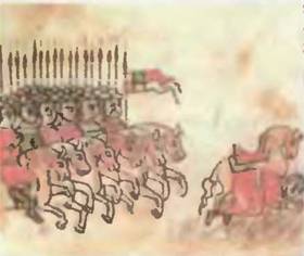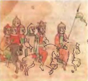 ФРАГМЕНТ МИНИАТЮРЫ С ИЗОБРАЖЕНИЕМ ПЕРЕСВЕТА. ЛИЦЕВОЙ СВОД XVI ВЕКА. ДРЕВНИЙ ЛЕТОПИСЕЦ