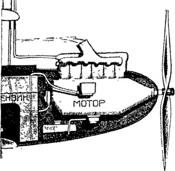 Рис. 9. Установка мотора и воздушного винта на самолете.