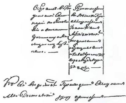 Автограф Михаила Достоевского - отца писателя. Фотокопия из архива М. В. Волоцкого