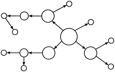 Рис. 6. Аналитический, или дедуктивный, способ организации текста. Не имея пока черновиков текста, работаем на уровне идей: пытаемся изобразить на чистом листе бумаги все (или почти все) главные элементы будущего сочинения. Затем разбиваем эти элементы на все более мелкие части