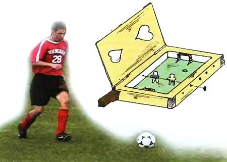 «Настольный» футбол — игра увлекательная. Но дома его не поставишь — слишком велик. Тем более, не возьмешь с собой в поход или в электричку, как карманные шахматы на магнитиках, мини-шашки или нарды.