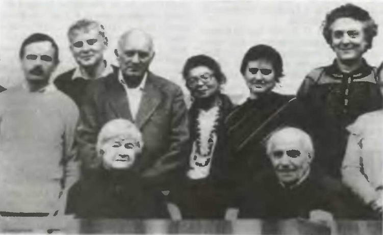 Василий Бычков (первый слева) и Михаил Бауэр (третий слева) среди участников симпозиума, посвященного 100-летию Э. С. Бауэра. Пущино, 1990 год