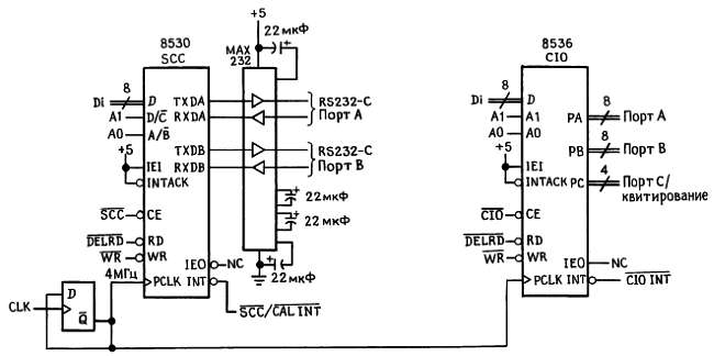 Рис. 11.13. Структурная схема последовательного порта Zilog 8530.