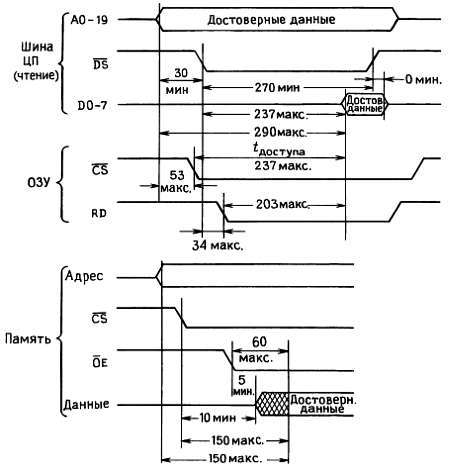 Рис. 11.12. Временные соотношения цикла чтения из памяти (статическое ОЗУ, 150 нc).